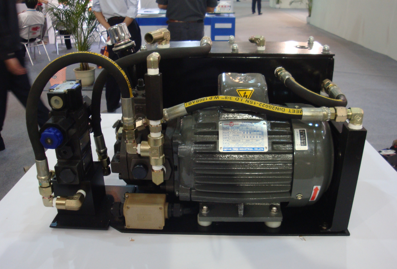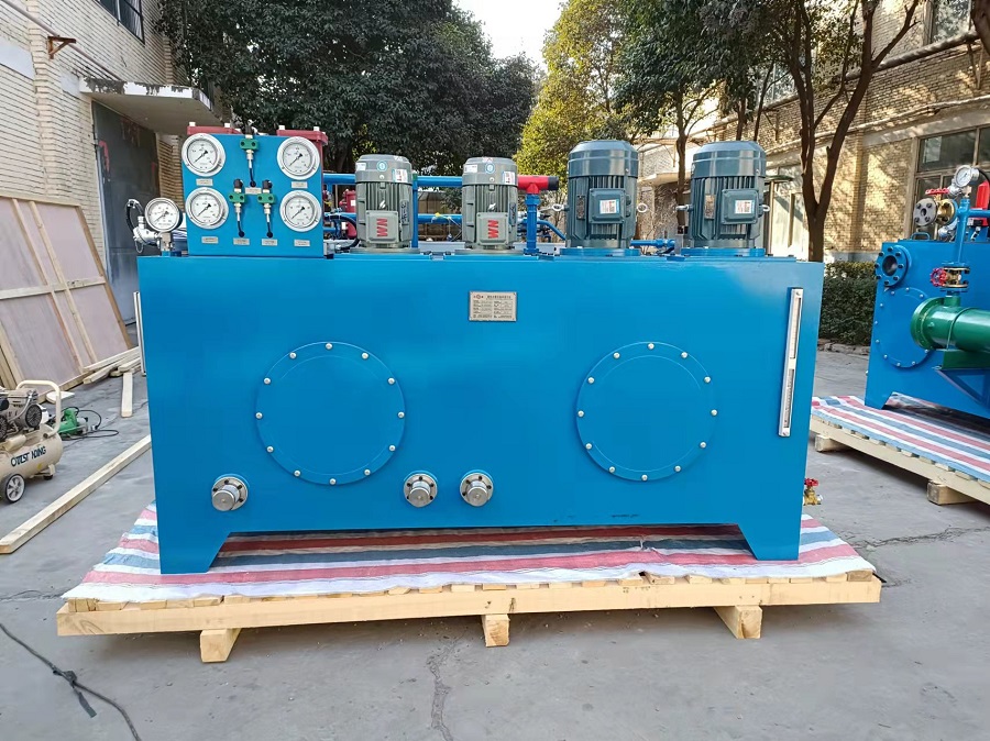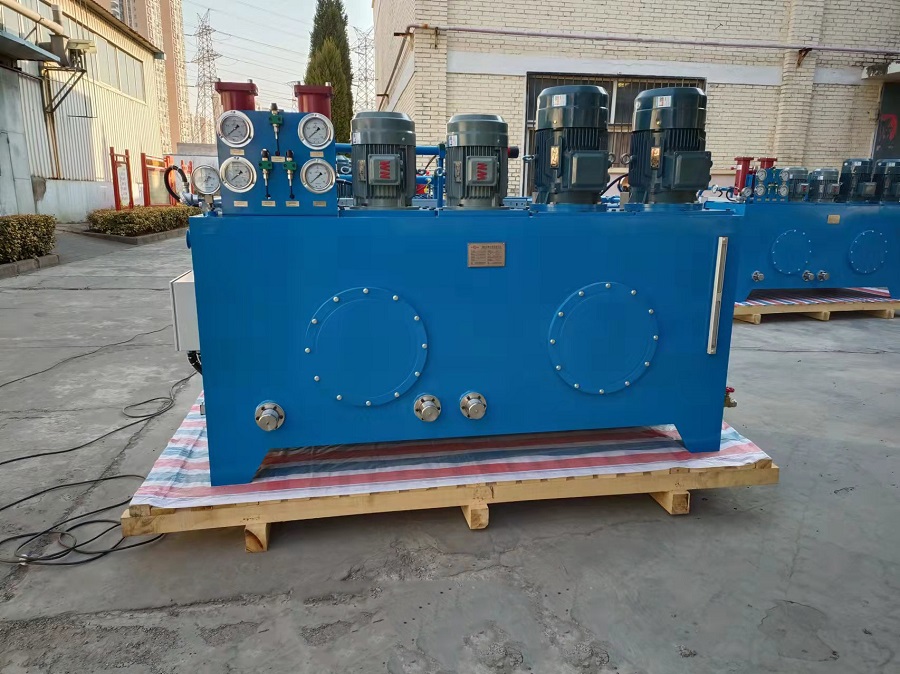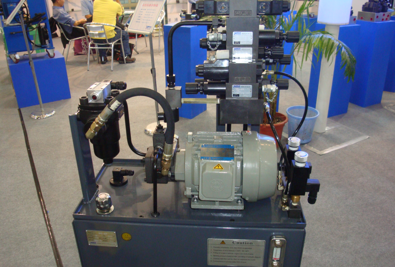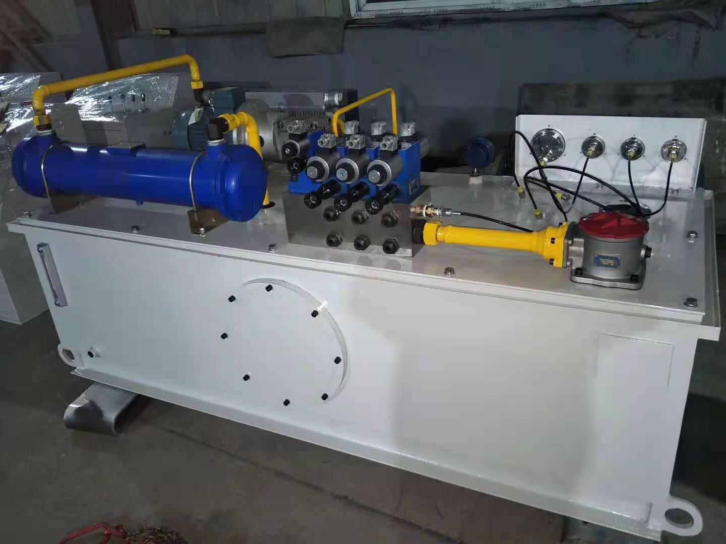 液壓系統又叫液壓站、液壓泵站,主要由裝有電機和油泵的動力源泵裝置、負責液壓油方向和壓力調節的集成塊、裝在立板上的板式閥組合、用于儲油和過濾的油箱、電器盒等5個功能部件,以及電動機、電磁換向閥、溢流閥、減壓閥、調速閥、液壓油過濾器、壓力表、空氣過濾器、油位計、溫度表和聯接管路等11個元器件組成。