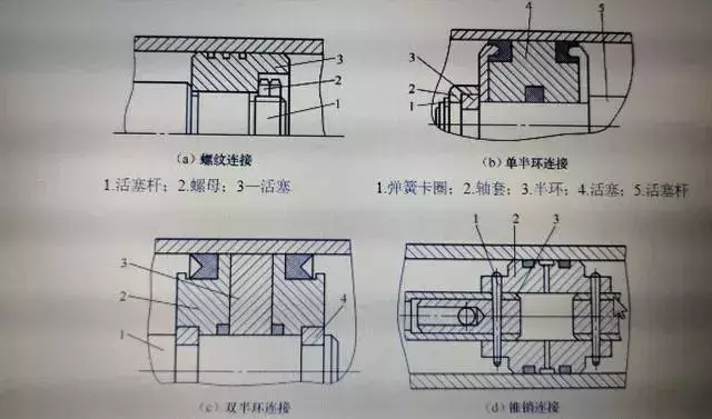 可以把短行程的液壓缸的活塞桿與活塞做成一體,這是簡單的形式。但當(dāng)行程較長時,這種整體式活塞組件的加工較費事,所以常把活塞與活塞桿分開制造,然后連接成一體。